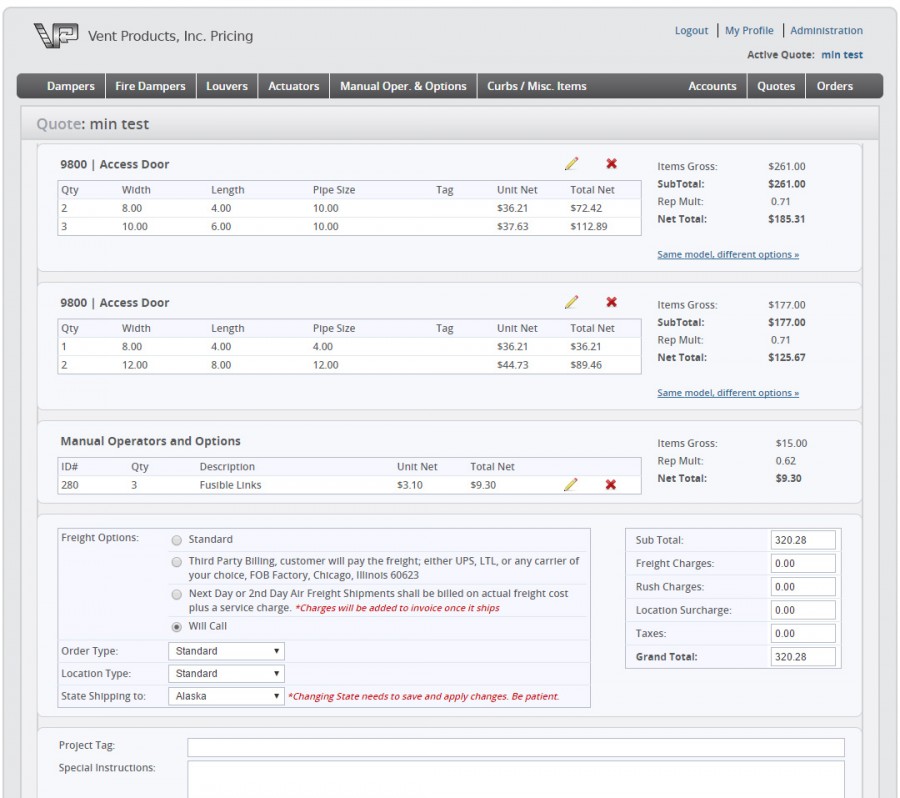 Vent Products Pricing
