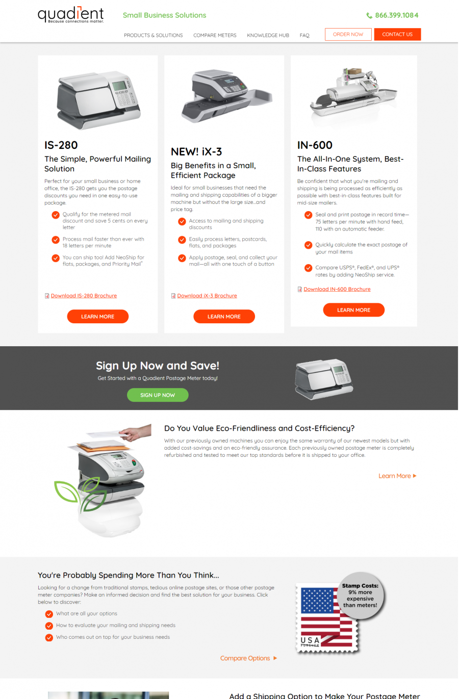 Quadient is a manufacturer of postage meter and mailroom equipment. Rodman Design built the quadientdirect.com site for generating sales of it's equipment. We integrated CRM software (Salesforce) and lead-tracking software, to work with the order and request forms. quadientdirect.com uses a custom content system created by Rodman Design and Development.