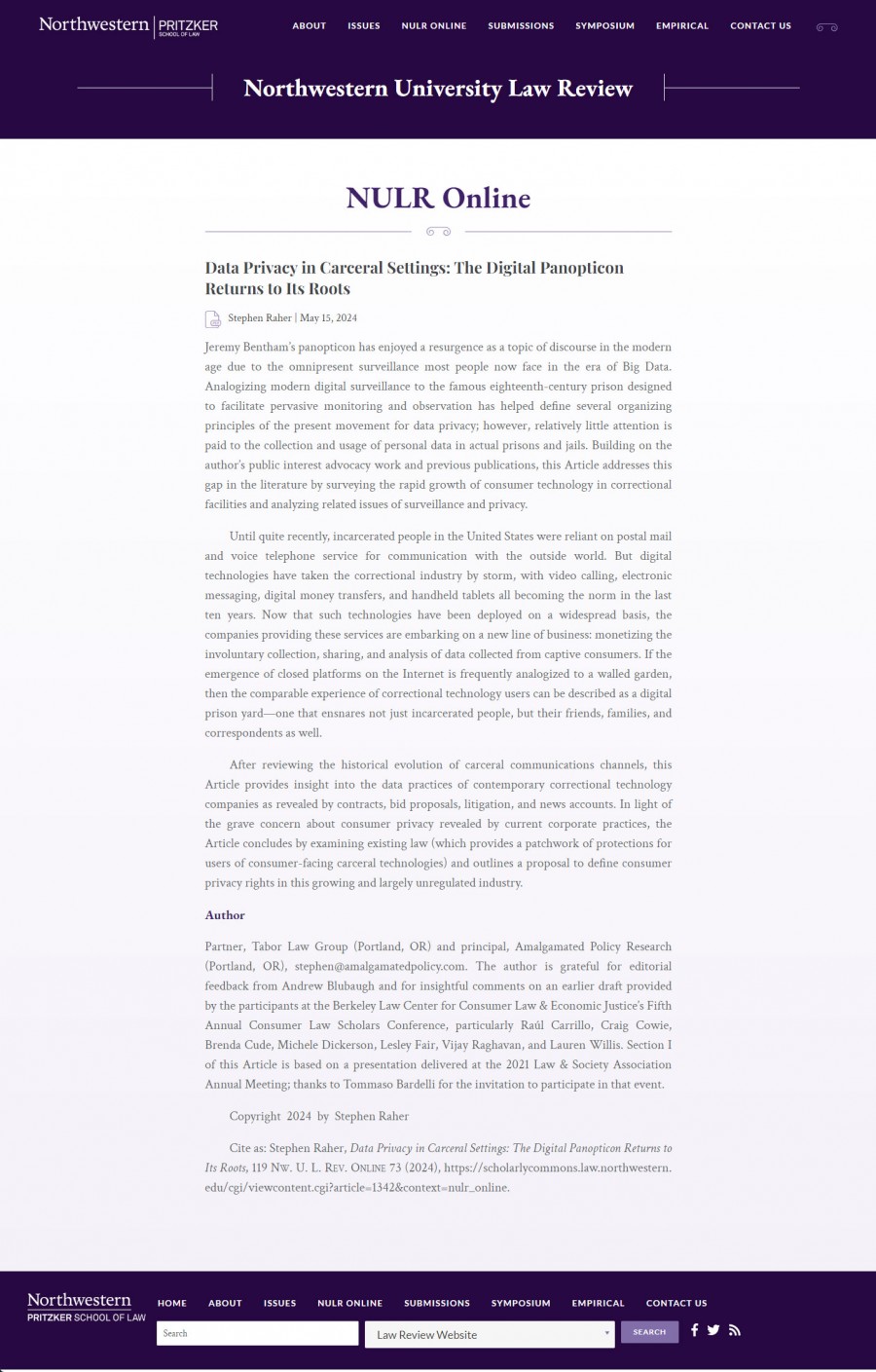 Rodman Design manages this sleek and professional platform for the Northwestern University Law Review, providing an accessible space for readers to explore in-depth legal scholarship. The design ensures ease of navigation while highlighting the publication’s commitment to rigorous academic analysis.
